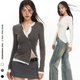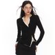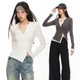 - 【亨利領解構斜門襟】三色疊穿針織打底衫