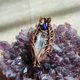 白水晶与青金石吊坠,线材为纯铜线仿旧处理。整体尺寸(长x宽)为41x17mm。