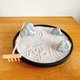 2.拆封完后,可用竹耙背面(非爪子那面)将沙刮平,然后开始用竹耙爪子那面去照自己喜好,于沙上画出想要的图案(收到时沙上并不会有如照片的纹路,运送过程必定无法保持)