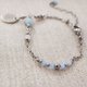 天然海蓝宝、蓝猫眼石。日复一日的平常,因为有妳每天都是特别的派对。全不锈钢链搭配海蓝宝、猫眼石,可以放心戴着洗澡、泡温泉、浸海水,适合一直不想取下手链的妳和她。