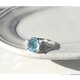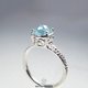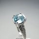 这款戒指镶嵌了鲜艳的蓝色碧玺,戒台则以唐草和缕空雕花工艺点缀。
