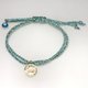Blue tone cotton cord with 4 in 1 lucky charm : clover leaf , horse shoe , fishbone and elephant.