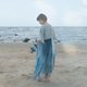 不同于一般的袖子,宽宽的特殊设计袖型,就像和服袖子的垂坠剪裁;