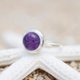 Beautiful stone, silver ring of amethyst (purple crystal) of purple.