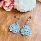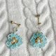 奥地利水晶手工梭织耳环 - 耳环/耳夹 - 棉.麻 蓝色