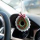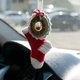 Christmas stocking and wreath is a cute accessory on the car mirror. It is small enough to not be distracting but still noticeable. The crocheted suspension does not knock on the windshield while driving and is safe during emergency braking.
