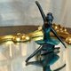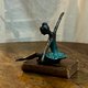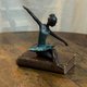 A charming and elegant resin sculpture of a seated ballerina, rendered in a classical pose with outstretched arms. Though lightweight, the piece has a convincing bronze-like patina with verdigris accents, creating a vintage, timeless look. Ideal as a decorative accent on shelves or desks, this sculpture adds a touch of quiet beauty to any space.