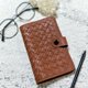编织皮革六孔笔记本的材质为铬鞣纯牛皮,使用的时间愈久,皮面会显现出温润的质感。