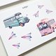 上学去贴纸组 材质:美术纸贴纸 140g 张数:共 4 张,2 款设计,每款各 2 张 尺寸:14.5 x 10.5 厘米 *裁切时可能会有 5mm 的误差。