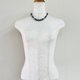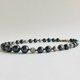 这款项链采用玻璃制成的仿巴洛克珠粒,经过多层独家珍珠涂料的细腻叠加,制成日本制造的仿巴洛克玻璃珍珠。珍珠色泽为质感细致、散发柔和光泽的枪铁黑色,营造出沉稳内敛的色调与低调的光泽感。独特的仿巴洛克玻璃珍珠,每一颗的形状都不规则且独一无二,尺寸约为直径 10mm~12mm 的仿巴洛克珠粒,搭配直径约 8mm 的素面玻璃珠,整体长度为适合一般女性的标准公主链长约 42cm。链扣采用龙虾扣与调节链设计,调节链长约 7cm,可自由调整配戴长度。