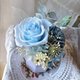 【花材】大地农园永生玫瑰、索拉玫瑰、绣球花、迷你满天星、加那利、蜡菊、叶脉、小桦木叶