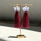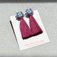 这款耳环以“大理花”(Dahlia)为灵感。酒红色的长穗流苏,如同花瓣般轻柔摇曳;而淡蓝色的珠饰,则在花朵中央散发着清雅的光芒。为您的耳畔增添一份纯净而坚韧的华丽感。