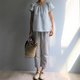 专属订单/法式休闲/牛奶芝麻灰棉麻窄版长裤