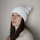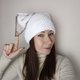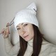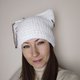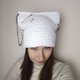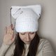 猫耳毛线帽钩针编织。带猫耳的白色帽子。蓬松方形毛线帽手工编织 - 帽子 - 其他材质 白色