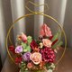 花材:日本永生进口玫瑰、火鹤、绣球花、、索拉大理花、索拉郁金香等及永生叶材。