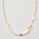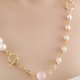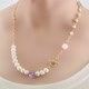 这款项链结合珍珠的高贵、水晶的璀璨、摩根石的柔美与透石膏的神秘质感,专为优雅且拥有淘气艺术气质的女性设计。
