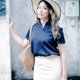 - 不对称领口的开襟上衣,简约西装料上衣 干净俐落,搭配不同的下半身 就能够展现出不一样的女子力。