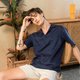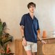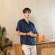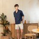 Solstice's Weekend Polo shirt collection, linen men's revere collar handmade short sleeve polo shirt. - Blue Color