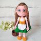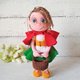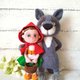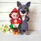 这是一个娃娃收藏家一个伟大的礼物。 不建议给10岁以下的儿童。 两个玩具都有一个电线框架。 他们可以弯曲手臂,腿和头部。 这个女孩娃娃是用棉纱织成的. 头发也由相同的纱线制成。 他们是安全固定的,你可以改变发型。 狼是用马海毛含量的羊毛纱编织而成的. 眼睛粘在胶水上。 玩具只站,小红帽-不确定。 颜色可能会因不同的显示器设置而有所不同。