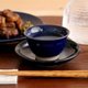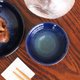 北欧的深青金石色与小石原烧的融合。 深蓝色让餐桌显得活泼。