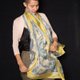 ✿手绘真丝围巾披肩。 画丝绸围巾。 夏天的围巾画。黄色,灰色的围巾,领域的雏菊。
