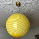 用我们的手工吹制玻璃球形吊灯的迷人美丽照亮您的空间。这款精致的灯具直径为 40 厘米(15.75 英寸),重 14 磅,采用充满活力的黄色漩涡条,营造出令人惊叹的视觉效果,为任何房间增添一抹精致。