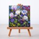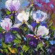 100% hand painted original iris painting. Floral original art. Colorful flowers art. Original Impressionist painting - painted on cardboard. On the front side of the textured wall art - the author's signature.