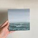 原创小海洋画 • 尺寸为 6 x 6 英寸(15 x 15 厘米) • 材质:油画颜料、画布板 • 原创,无框 标题 穆迪海岸 送给朋友的礼物,送给海洋爱好者的礼物。极简设计,雾海画,小海洋画,海景艺术,海洋墙装饰