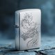 在这款缎面铬材质打火机上,采用极致雕刻工艺勾勒出一条盘旋腾空的东方神龙,细腻刻画出龙鳞、须须与怒目神态,栩栩如生、气势非凡。