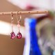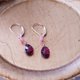 法式耳勾不容易脱落,是欧美国家很爱使用的素材(包括设计师),镁铝榴石在灯光反射下的紫红色看起来娇艳欲滴,跟菱锰矿一样红频色宝石,有助增加爱情运广结人缘喔~~~