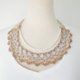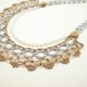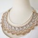 精致且绚丽的手工蕾丝项链,该款商品以钩编蕾丝及串珠蕾丝的钩法所制成。摩卡棕及银色的手钩蕾丝搭着珠光蛋白色及焦糖色的日本玻璃小珠,再配上一条典雅的珍珠链,宛若秋夜里的月光,柔情、诗意、和无可救药的浪漫……