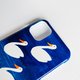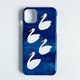 一款智慧型手机壳,上面画着四只天鹅在深蓝的湖面上畅泳。