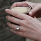 此戒指有方形和圆形两款,为了马赛克般的闪烁效果,表面处理选择了亮面抛光。银饰可能会随着时间轻微变黄,为戒指带来独特的个人印记,也可以拭银布轻易去除氧化层,回到纯银本色。