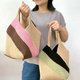 棉线编织4角手提包-拼色草莓冰+巧克力+卡其白