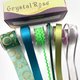 内有金葱月光网纱带,搭配柳叶绿、凫绿双缎面缎带、深灰缎边网纱和珠光缎面缎带