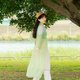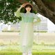 Vintage 浅绿色刺绣花卉透肤绑带睡衣罩衫