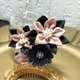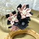 透过粉红色和黑色布料的层叠来表现对比的作品。 将布花的质感与花芯结合起来、这是一件典型的妻见细工作品。 您可以享受多种将其用作发饰的方式。