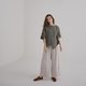 交叉的下摆有点像是鸟儿的羽翼,随着动作摇曳的时候,让衣服里的人显得自在可爱。但若是将其扎进下身,就变成了一件蝙蝠袖的上衣,没有不修边幅的率性,多了一点沈着的自信。