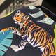 选用收藏布料手作而成,鲜艳雨林中点缀金黄色的花豹以及老虎,搭配五金配件以及精致手工,是一款方便手提又具肩背功能的硬挺包款。