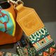 ✨This is stunning Colorful fabric very soft glossy comfort and strong. Leather part is Genuine Leather and high quality gold hook .