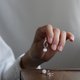 此款设计捡选了带可爱猫眼现象的透石膏,当光穿透其中时会折射出一条明亮的光带,这条光带会随着晃动而时宽时窄,就像猫咪的眼睛一般。