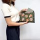 此款手提包四边由四合扣固定,稳固但也方便打开来替换中间的布块。