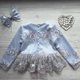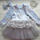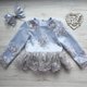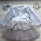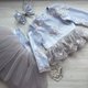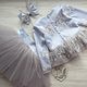 Hand made dress for girl .Can be as blouse and skirt. Dress for birthday or other party. Blouse with lace, feathers and bottoms pearls and tutu skirt.