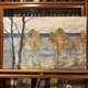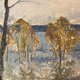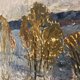 在《早春的低语》中,阿纳托利·斯维特拉科夫巧妙地传达了从冬天到春天的微妙过渡。这幅画散发出一种安静、沉思的氛围,画中白雪皑皑的风景和水面用凉爽的蓝色和灰色描绘出刚刚过去的冬天的寒意,开始让位于即将到来的季节的温暖。这种正在涌现的温暖最引人注目地体现在水边树木明亮的金黄色叶子(或阳光照射的树枝)上,它们就像柔和的背景下生命回归的灯塔。艺术家富有表现力和质感的笔触为场景注入了一种即时感,捕捉到了光线的短暂性和早春清爽的空气。