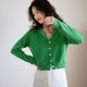纯羊毛针织开衫复古Polo 翻领,胸前有针织花纹