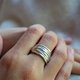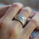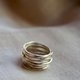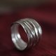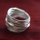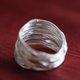 We used long, continuous silver wire which we hammered and twisted and then applied in 14 loops to create the shape of the ring. The ring is lower at the back where the wire is joined together and opens up to be at its widest at the front.