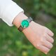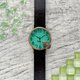 这款手表采用了翡翠色的彩色玻璃,让人联想到森林深处的微波荡漾的古老池塘,