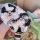 - Pomeranian brooch, pet portrait, pomeranian jewelry. This brooch can be used as number clip for dog shows. Can be made from your pet's photo if you send the photo in the message. Size 2.4"x2.4" (6x6 cm). Materials : crystals, Swarovski pearls, natural pearls, glass beads, rhinestone ribbons, chenille, Japanese pin.