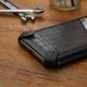 *屏幕加强防撞-使用人字缝线工法将皮革紧紧包覆于屏幕周围一圈厚达0.8mm锰钢防护环,手机不慎落地时借由环状传导原理将撞击力道平均扩散,降低屏幕碎裂风险