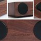 为了呈现结合现代科技的 Hi-Fi 音响意象,我们刻意在木箱上留一个漂亮的 R 角,并且使用圆形金属网增添现代感与线条丰富度,同时能保护前方单体;外型既经典又迷人,具有现代的简约感。